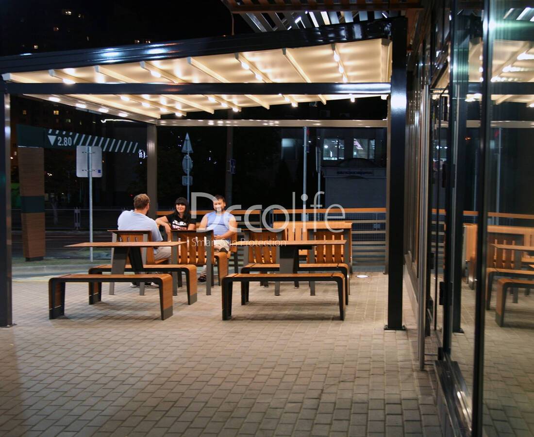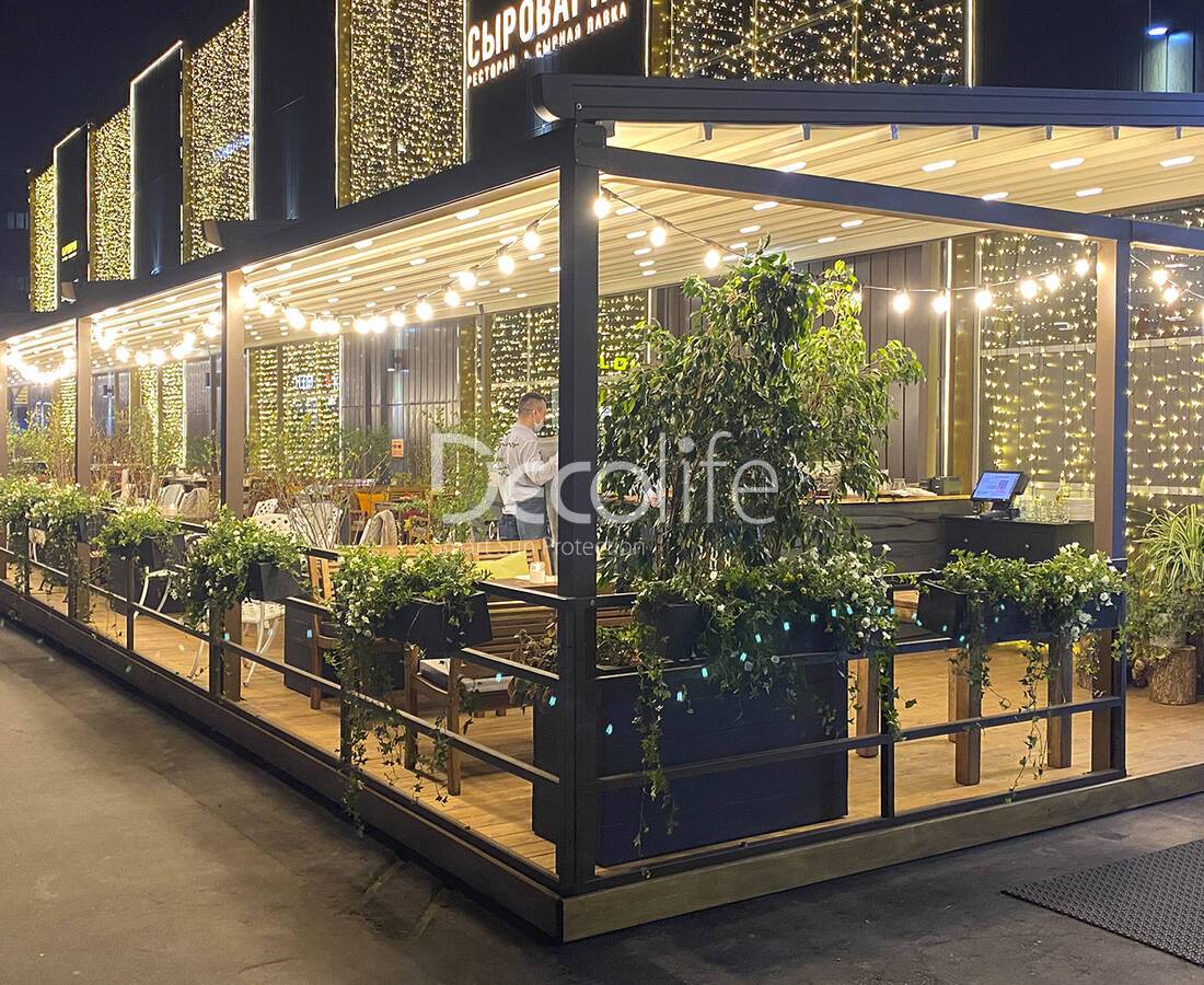 Перголы Decolife Solo Fly + Project Light, объект реализован партнером @markiz - г. Москва, Фуд-холлов Eat Market