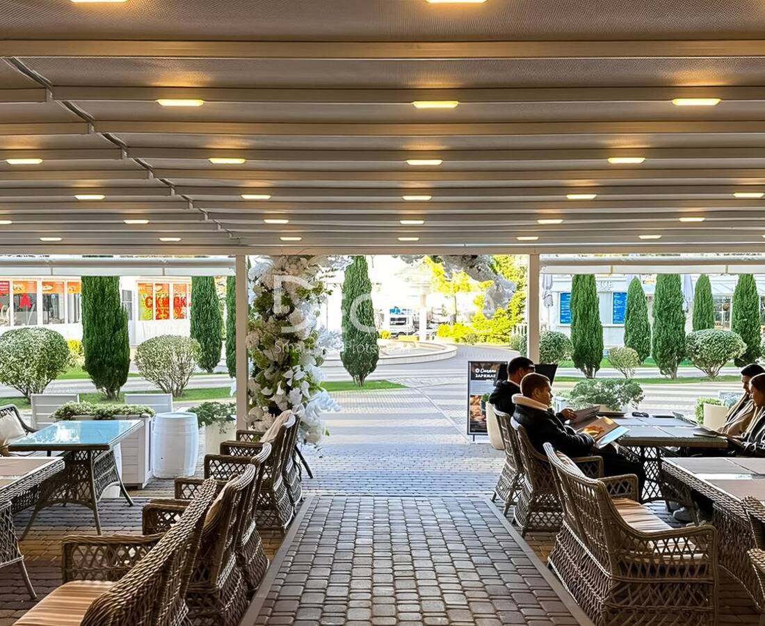 Благодаря такой особенности, конструкции предотвращают перегрев и отлично защищают от солнечных лучей в жару, хорошо затеняют пространство по всей площади. Герметичность ламелей важна и в непогоду, когда крыша не пропускает дождевую воду. Среди плюсов таких конструкций – надежность за счет алюминиевого каркаса, удобство управления, минимальный уход и простое обслуживание, а также возможность установки на всех площадках.