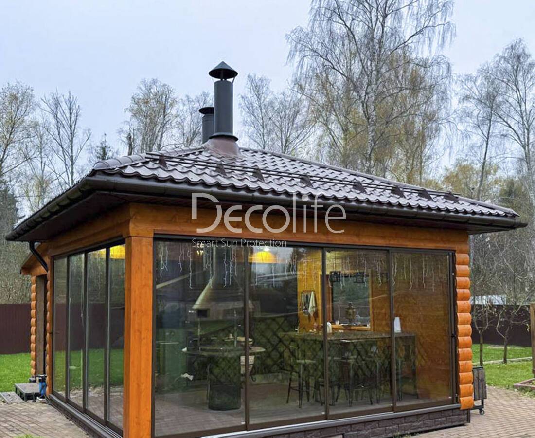 Пергола тентовая Decolife Project Light + Подъемное остекление W500 - реализовано партнером "ООО Люкс Террас" - Московская обл.