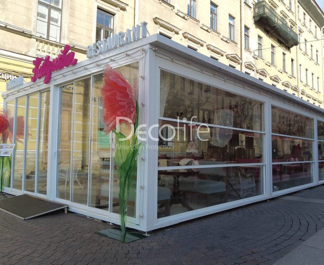 Гильотинное остекление W700, теплая серия, кафе "Riesling boyz" - г. Москва